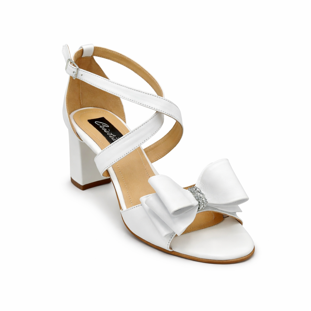 Sandale Cristiano Alb, toc de 10 cm patrat