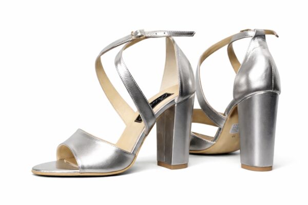 Sandale Cristiano Argintiu, toc de 10 cm patrat